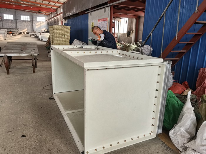 玻璃鋼模壓水箱是由SMC模壓板塊、密封材料、金屬結構件及配管系統現場組裝而成。給設計和施工帶來很大方便。一般水箱按標準設計,水箱需要設計??筛鶕脩粜枰M裝0.125-1500立方米的水箱。若原有水箱需要換,不需要改造房屋,適應性很強。研制的定型產品密封帶,該密封帶、耐水、彈性大、變型小,緊固密封。水箱整體強度高,無滲漏,無變形,保養、檢修方便。 玻璃鋼水箱是目前采用的新型水箱。由整體SMC水箱板拼裝而成。其特點是采用食品樹脂,因此水質好;具有強度高,重量輕,耐腐蝕,外型美觀,使用時間長,保養管理方便等特點。